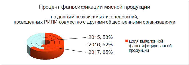 По данным РИПИ и наших партнеров статистика фальсификации мясных продуктов никак не коррелируется с данными Роспотребнадзора — ведомством, призванным контролировать качество продуктов.